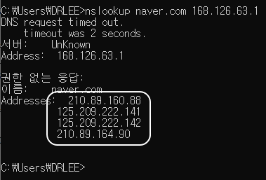 nslookup naver.com 168.126.63.1