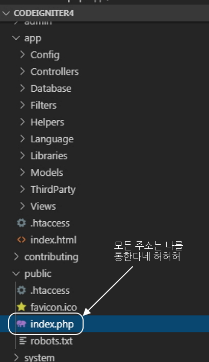 그러니 항상 호출되는 녀석은 public 폴더의 index.php 입니다.