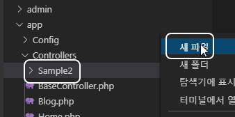 지난 강좌를 참조하셔서 Controllers 폴더에 Sample.php 파일로 저장해주시기 바랍니다.
