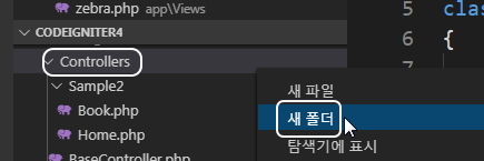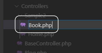 이번에는 좀 색다르게, 컨트롤러 폴더 하위에 Sample2 폴더를 만들고 그 폴더 안에 Book.php 파일을 생성하는 것이지요.