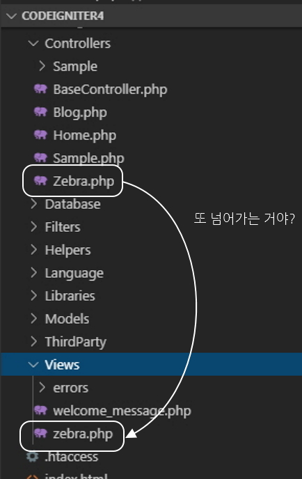 주소가 /zebra 인 경우 Controllers/Zebra.php 파일을요.