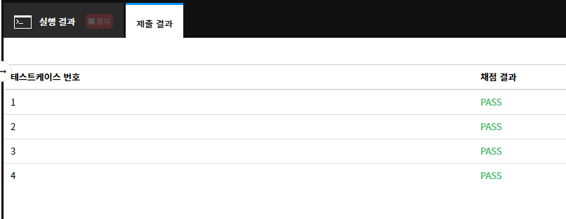 위의 소스는 4개의 숨겨진 테스트 케이스를 모두 통과!