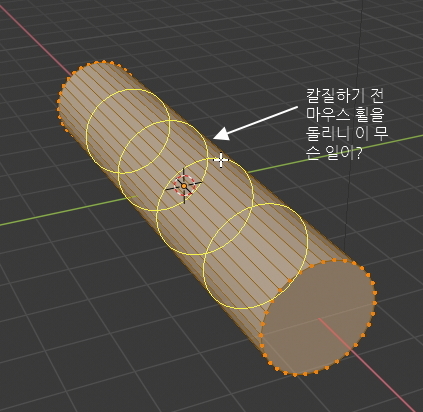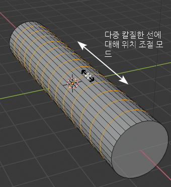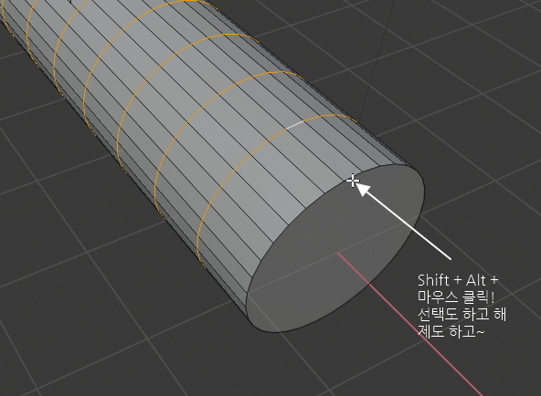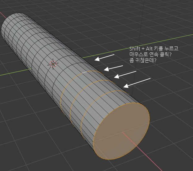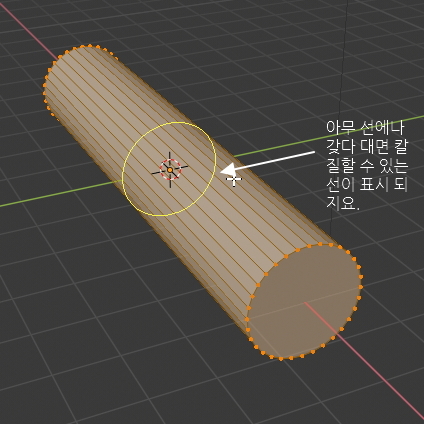 다음으로 Ctrl + R 단축키를 누르고 마우스를 원통 중간의 아무 선에 갖다댑니다.