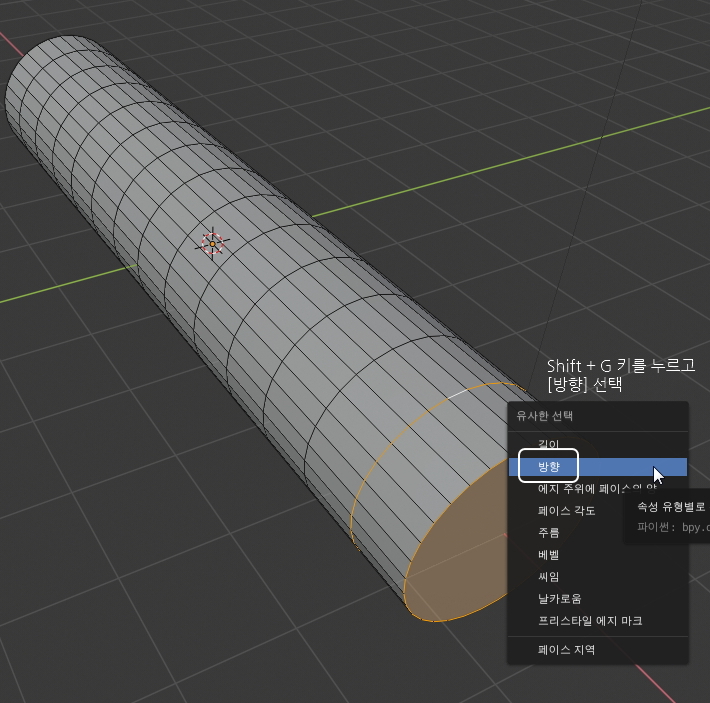선만 선택된게 아니라 모든 면이 선택되었군요.