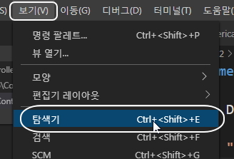 혹시라도 왼편의 탐색기 창을 닫았거나 다른 창을 열어서 보이지 않거든