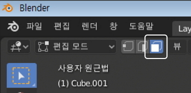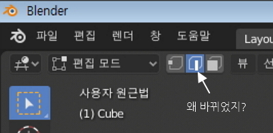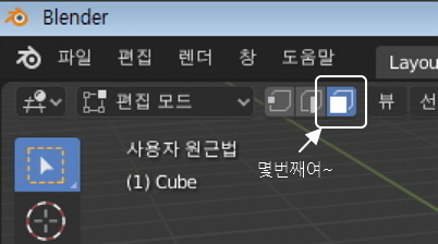 블렌더를 시작하면 큐브가 보이시지요?