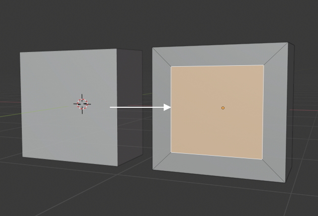 인셋은 아래처럼 면을 안쪽으로 수축하여 새로운 면을 만드는 기능인데요.