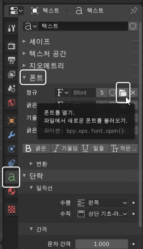 블렌더 시작 후 텍스트를 추가하여 글자를 생성합니다.