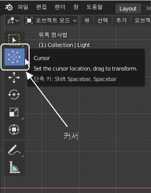 그리고 새로운 조명을 배치하기 위해서 커서 아이콘을 선택합니다.