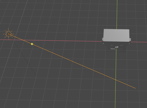 그리고 나서 R 키를 눌러, 태양광의 방향을 로봇얼굴로 향하게 합니다.