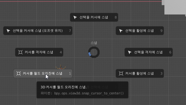 커서를 월드 오리진에 스냅 메뉴를 선택하시면,