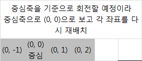 아래 그림에서 흰색을 회전 중심점이라 칩시다.