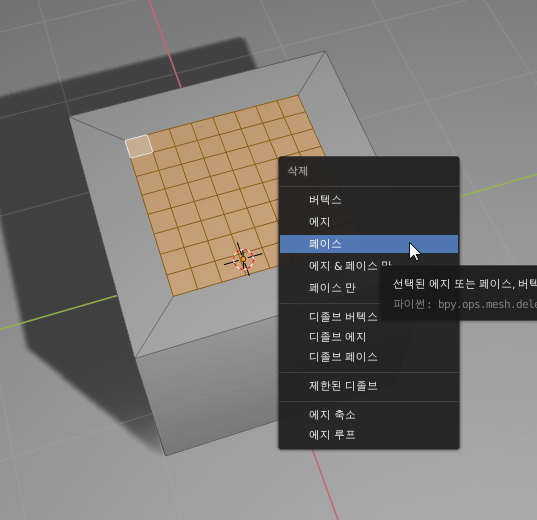 Delete 키를 누르고 페이스를 삭제합니다