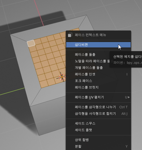 블렌더 2.8에서 인셋 기능은 면을 수축하여 내부에 새로운 면을 만들어 줍니다.
