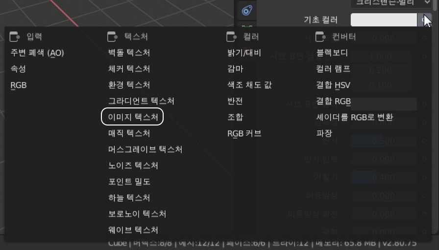 블렌더 2.8에서는 정육면체 uv가 자동으로 펼쳐진 채로 제공됩니다.