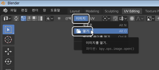 이미지 - 열기를 선택하고 블렌더 스타일의 탐색기에서