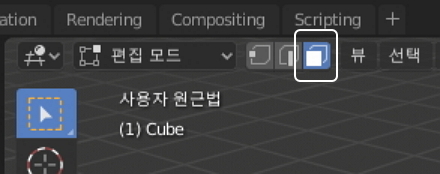 블렌더를 시작한 후 자동으로 생겨난 큐브를 오늘은 그대로 사용할 겁니다.