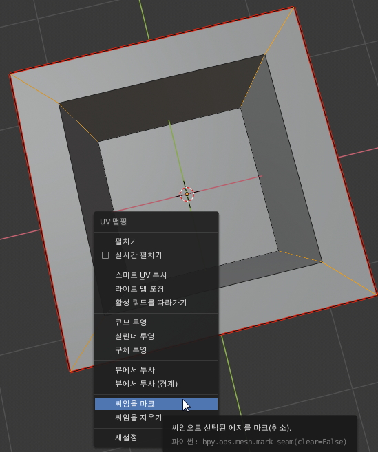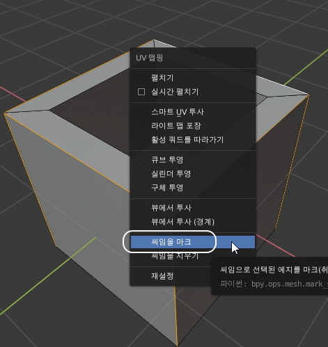 그리고 다시 단축키 U 키 - 씨임을 마크 메뉴를 선택해주시면,