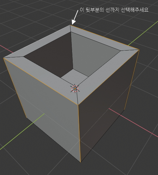 아까처럼 바깥쪽 4개의 면과 바닥면을 3D 오브젝트 화면에서 선택하시는 방법도 있지만