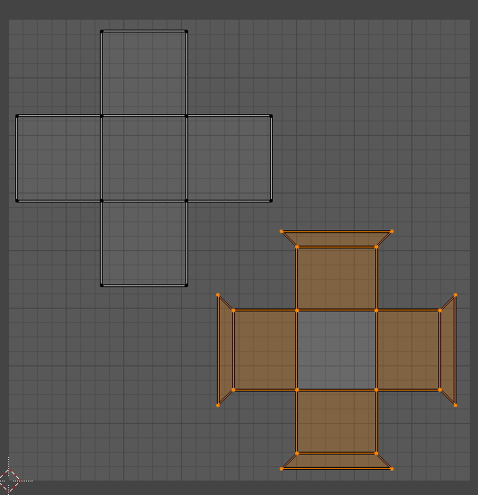 그러면 왼쪽 화면에 선택한 면의 UV가 펼쳐졌는데, 엇, 대각선 방향으로 펼쳐졌군요?