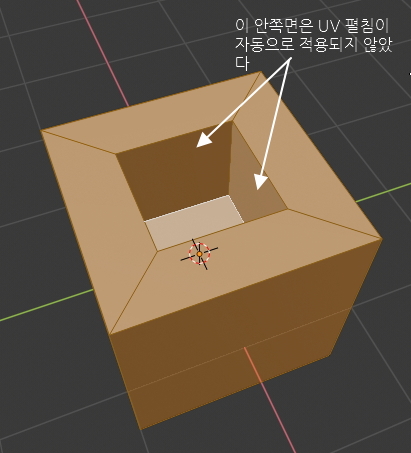 하지만 단순한 큐브만을 위한다고 할 때 이 자동으로 생겨난 uv맵은 완전하지 않습니다.