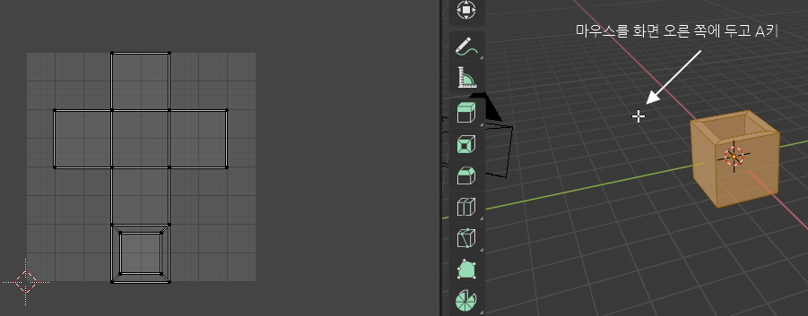 마우스를 왼쪽 화면으로 옮기고 단축키 A 키를 누릅니다.