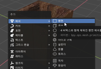 Shift + A, 메쉬, 평면을 선택하신 다음에,
