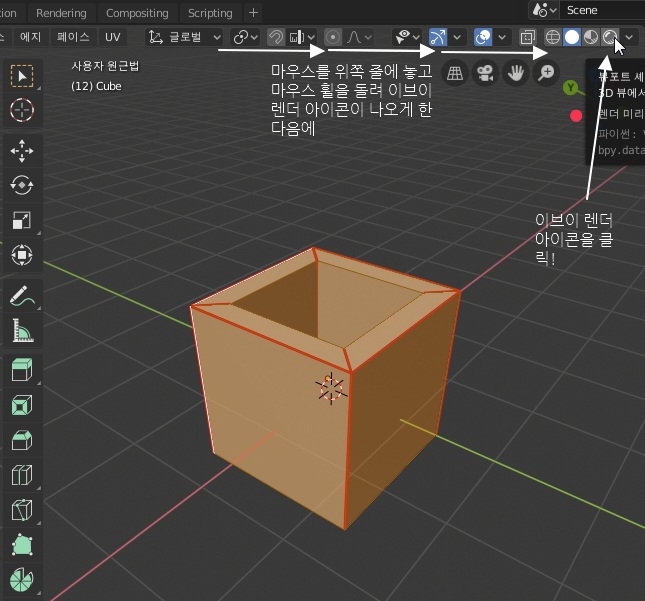 거기서 이브이 렌더 아이콘을 클릭하시면,