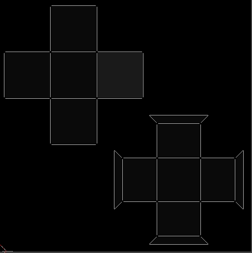 지난번 나무상자를 펼쳐서 만든 UV맵은 마치 전개도와 같습니다.