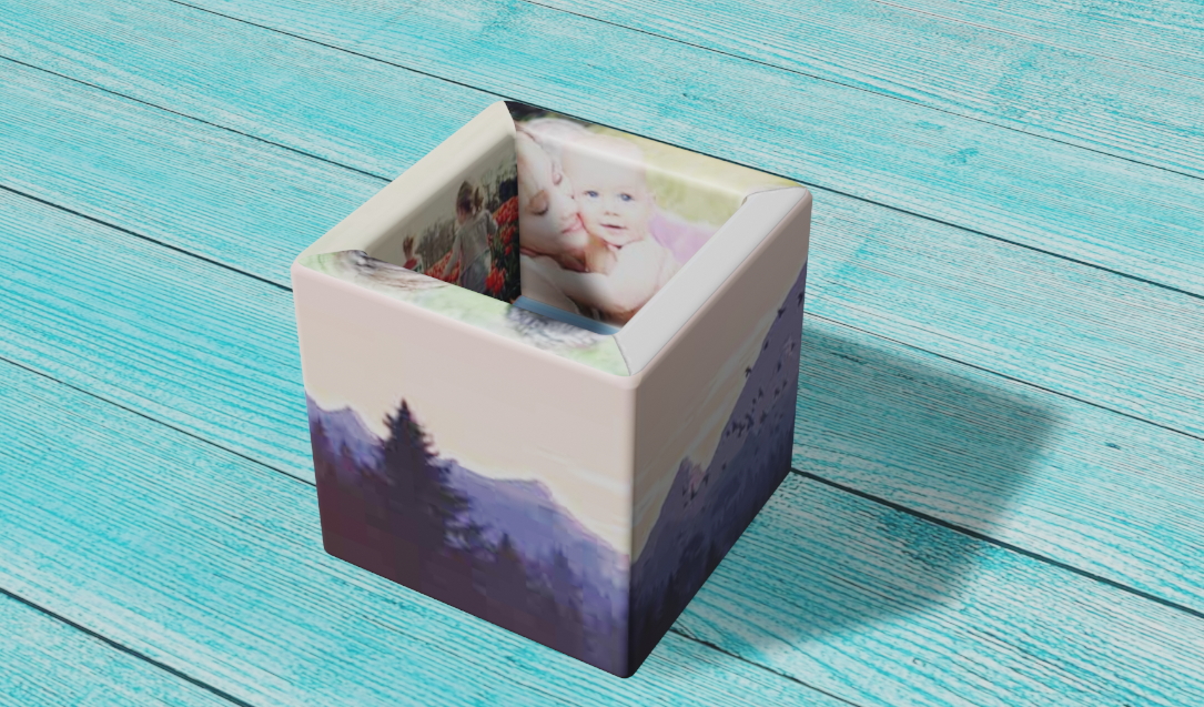 내부면과 외부면을 그림으로 채워주시기 바랍니다. 무늬가 아닌 그림을 넣는다면 상하좌우를 신경써서 넣어 주시면 됩니다.