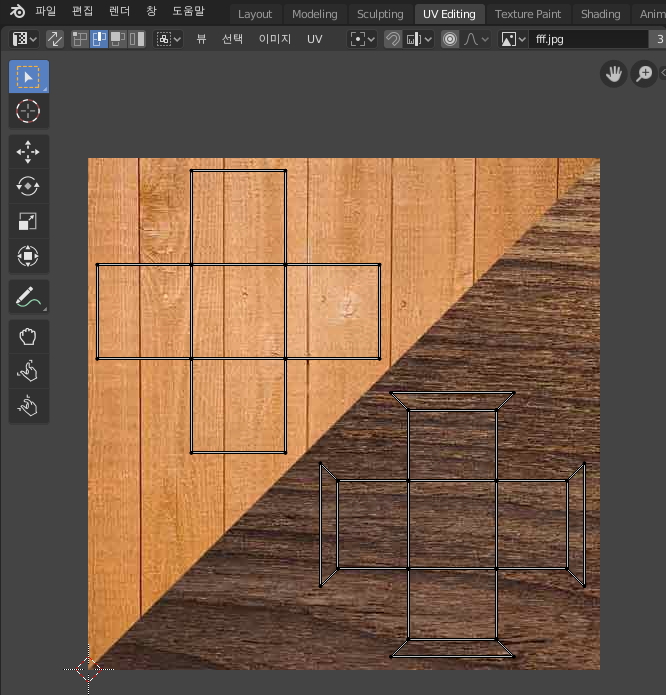 이번 시간에는 이 UV맵에 나무 무늬를 넣는 법을 살펴보겠습니다.