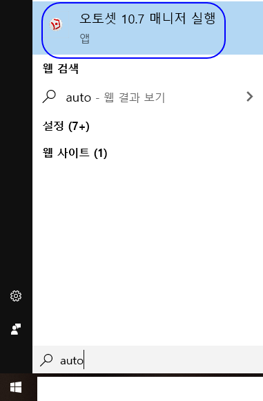 먼저 시작 버튼을 눌러 오토셋 10.7 매니저 프로그램을 실행해 주세요.
