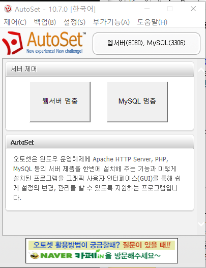 앞 강좌에서 오토셋을 설치한 경우 매우 수월하게 MYSQL 접속을 하실 수 있습니다.