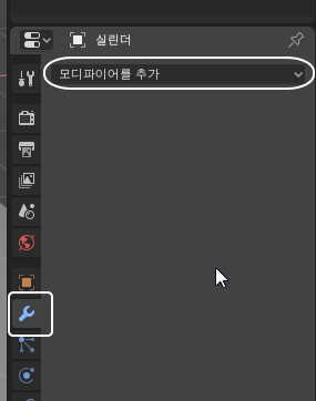 두께를 주기 위해 모디파이어 아이콘, 모디파이어를 추가 메뉴를 선택합니다.