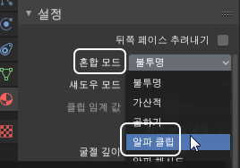 알파 라는 항목도 그 종류를 이미지 텍스쳐로 바꿔주셔야 하는데요.