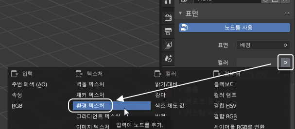 컬러 우측 원모양 아이콘 클릭 - 환경텍스쳐 선택