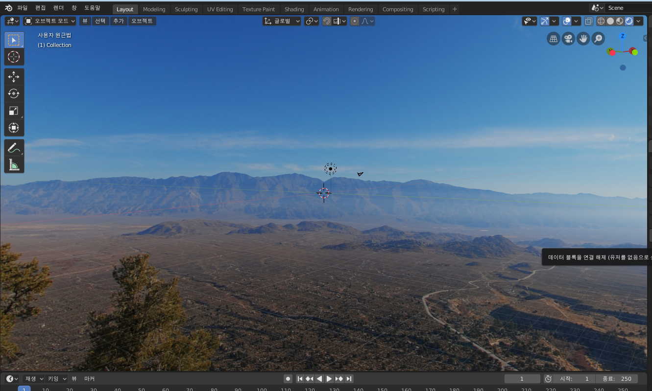 다시 TAB 키를 눌러 오브젝트 모드로 돌아오면,