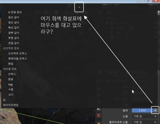 그 이유는 너무 선택 항목이 많아서인데 화면 위쪽에 회색 화살표에 마우스를 갖다 대고 있어보세요.