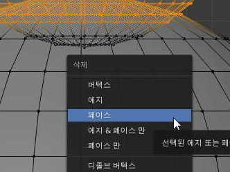 Delete키를 누르고 페이스(면)을 선택해서 선택된 면을 우선 지워주세요,