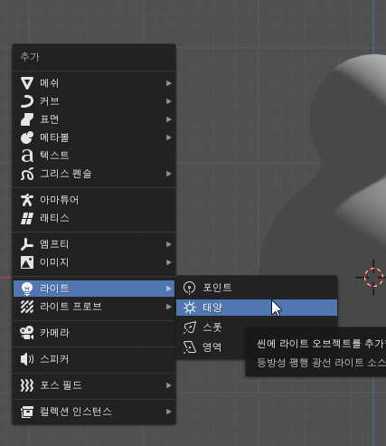 Shift + A, 라이트 - 태양을 선택하시고,