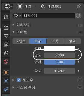 값을 5 정도로 하면 태양빛이 강렬해지지요,