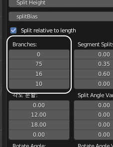 가지 갯수는 Branches 항목인데요. 왜 조정 수치가 4가지나 있는 걸까요?