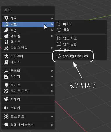 검색되는 Add Curve: Sapling Tree Gen 항목의 좌측 체크상자를 선택해주세요.