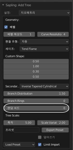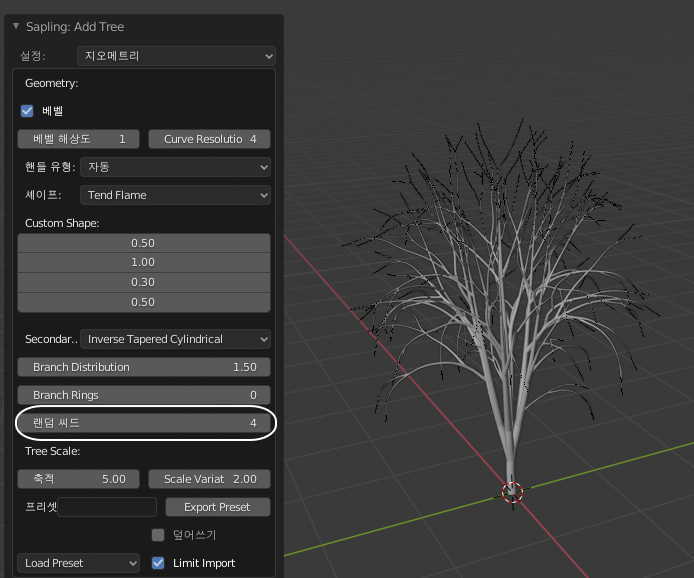 씨드값에 따라 각기 다른 나무가 만들어 질 수 있으니 나만의 나무를 만들고자 하신다면,