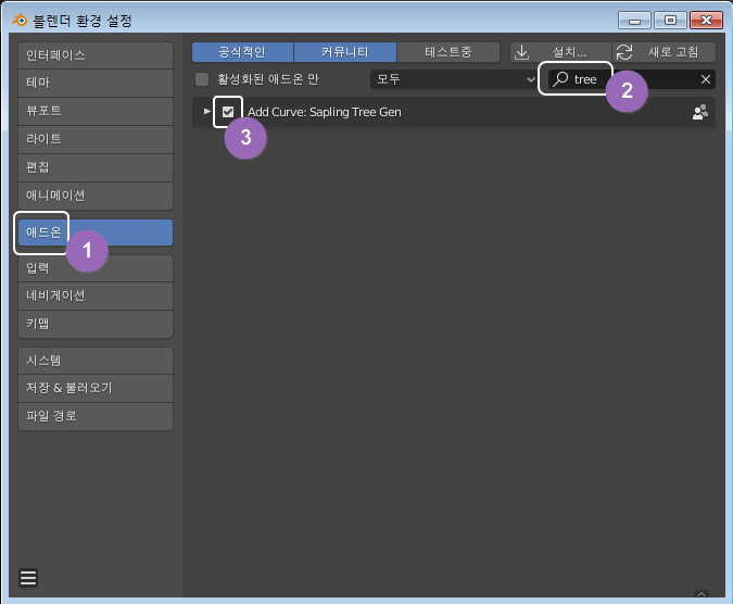 오늘 소개해드릴 애드온 기능은 나무 만들기 애드온인데요