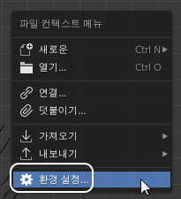 그러면 블렌더 환경설정 팝업창이 노출될 겁니다.