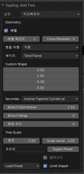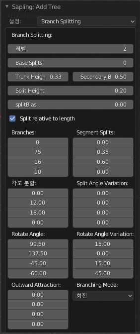 레벨은 나무의 가지가 몇단계로 파생될지를 결정하는 속성인데요. 기본값은 2입니다.