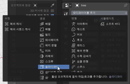 그리고 모디파이어 - 솔리디파이를 한번 적용해보도록 합시다.