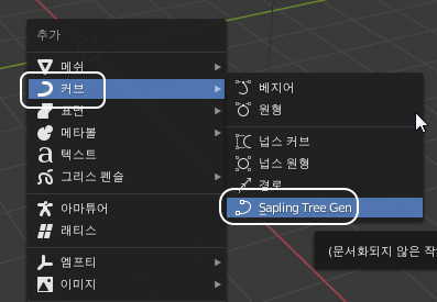 Shift + A, 커브 - Sapling Tree Gen 을 선택합니다.