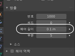헤어길이의 기본값이 무려 4미터인데요. 0.1미터로 우선 줄여봅시다.